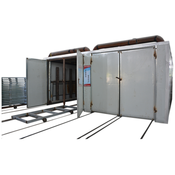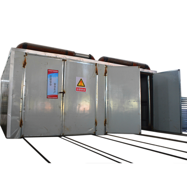 5、采用兩箱烘烤室設計,鋪設四條進出軌道,物料轉移更方便,烘烤效率更高